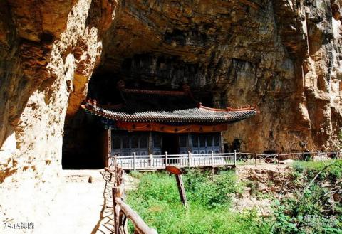 西禅院介绍:由毗卢殿东向而行,千余米的栈道上共有石洞15个,其中最长15米,穿行其间险与奇同在,苦与乐共享。15米的长洞尽头,西禅院高耸于300余米的石壁凹地,是寺庙住持的寓所。从西禅院石门洞中钻出折向北行,有大佛殿的遗址,据说大佛殿原为上下两层阁楼式建筑,甚是壮观,可惜已毁。