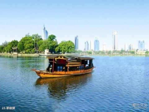 翠柳屏介绍:稼轩祠北的湖中有小岛兀立,岛之周岸,垂柳依依,环列如屏,故名翠柳屏。小岛之西有石砌三孔堤桥与岸相通,迤逦水中约40米,桥起三拱,中拱最高,小舟可于桥下自在穿行,越桥南,可荡舟藕花深处。