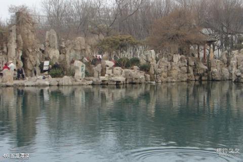 五龙潭泉介绍:公园内共有泉水28处,共同组成五龙潭泉。五龙潭在金代称其为“灰湾泉”。六朝时称其为“净池”,宋时又称“四望湖”,为古大明湖的一部分。据《水经注》记载,北魏该泉就是闻名中外的“天下第一湖”——大明湖的一隅。相传,五龙潭昔日潭深莫测,每遇大旱,祷雨则应,故元代有好事者在潭边新建五龙神庙,内塑五方龙神,自此便改称五龙潭。