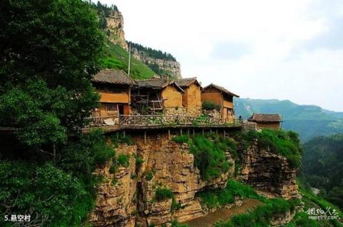 悬空村介绍:悬空村,原名“王化沟”,是深匿宁武林海中的一个小村庄。村庄居于半山腰上,顺崖就势而建,从谷底仰望,好似空中楼阁。整个村子面向峡谷,前半部分多以木柱支撑,悬空而建。在其前面加宽,铺就木板,便是村中唯一长约不到一公里的道路,形成了罕见的“空中栈道”景观。