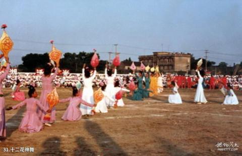 十二花神舞介绍:“十二花神舞”是在农历春节期间进行的一种祭祀舞蹈,祈祷丰年。是平湖特有的一种民间舞蹈形式。