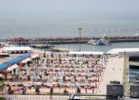 陆域停船区介绍:陆域停船区总面积约30500㎡,为直立式岸壁,区内设有下水坡道和趸船。这一部分在奥运会时为运动员参赛船只的停放场地,是最高警戒限入区域。赛后已改为餐饮区,方便游客的游览需求。