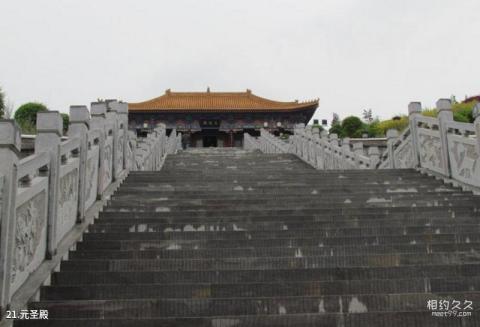 元圣殿介绍:元圣殿为周公庙的中心建筑。大殿阔五间,深三间,绿瓦彩绘。殿内神龛供奉周公像,东配伯禽塑像,西旁侍立“金人”塑像,金人背后书有周公口嘱的铭文,内容是周公从自己从政的切身体验,规诫伯禽处事要小心谨慎。