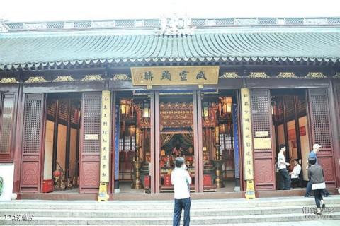 城隍殿介绍:城隍殿是城隍庙内的最后一进殿,两侧悬有对联以赞扬城隍神公正无私“祸福分明此地难通线索,善恶立判须知天道无私”,上悬匾额“威灵显赫”。殿内另有一幅赞神对联“天道无私做善降祥预知吉凶祸福,神明有应修功解厄分辨邪正忠奸”横批“燮理阴阳”。城隍殿中央供奉上海县城隍神红脸木雕像,正襟危坐。城隍殿内仿照明代县衙公堂陈设,仪仗森严。