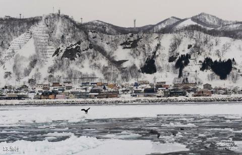 罗臼是个渔业中心,街上没有大型旅馆,北方渔港特有的风俗情调笼罩着整个小城,雪后的渔村活像一幅泼墨山水画。