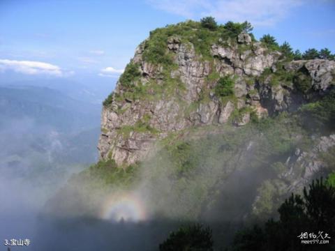 宝山寺介绍:宝山寺坐落在宝山主峰南侧,又称宝灵庵,整座建筑由上庵、下庵、半岭庵组成,上殿始建于元至正二十三年(公元1363年),为全国仅存的元代砂岩仿木石构古寺;下庵由石构山门、全石构大殿、木构全殿、木构右殿、餐房等组成,为佛道合一的寺庙。