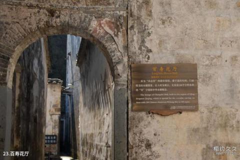 百寿花厅介绍:百寿花厅与承志堂、承德堂连在一起,原为“承志堂”主人俞氏老三的迎宾客厅。最左边的低矮月亮门便是“百寿花厅”。