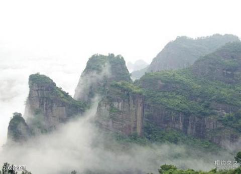 观音坐莲介绍:位于狮山北面第一峰,其山全石,山体雄伟,山下小丘陵环绕,山形似少女抚膝静坐于莲花座之中。山峰东南面有小石梯级,沿石阶可攀登至山顶。峰北崖壁中有“口”字形岩洞,长、宽各10余米、深约8米,可容数十人;有“×”形石缝从峰底至半峰交叉于“口”形岩洞,沿“×”形石缝中的石级可攀至岩洞,惊险有趣。