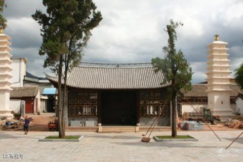 等觉寺介绍:等觉寺传始建于南诏,清咸丰时期(1851-1861年)毁,现存太阳宫及双塔。太阳宫,单檐歇山顶,面阔五间,四周设廊,檐下施重昂斗拱,粗大古朴,始建于明永乐十六年(1418年)。门外双塔,明成化元年(1465年)蒙化府土官左氏建,为九级密檐方塔,塔身洞龛内置石雕佛像。
