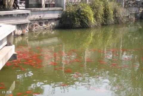 园中开凿一条东西向的水池,融山景水色于一体。池塘内饲养着成群的红鲤,每当拥簇成群时,红彤彤一片。