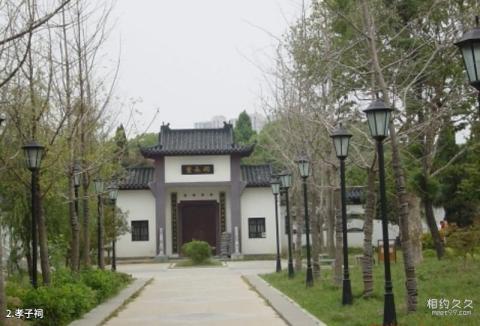 孝子祠介绍:位于公园中部,屋顶青色古瓦,门院粉壁花墙,院内正厅坐北向南,多开的雕花门屏,四周花卉盆景,古色古香协调匀称,祠正堂立着记载董永生平的横匾,两旁陈列着有关的文物、碑石、族谱和名人字画。祠院正中耸立着董永和七姐满工回家的汉白玉塑像,祠院围墙的十六面窗花,以浮雕形式,展示了民间传说中的16个孝子故事图画。