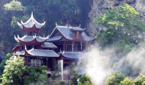 中元禅院山门建于石隙洞道口,上有清道光年间石刻楣额“入黔第一洞天”,大佛殿左后侧山崖上的中元洞有北、西、南三个洞口,洞内有前人题刻的摩崖、诗碑多处,西洞口内有传说武当山著名道士张三丰云游到此修炼的石床,石床上方有张三丰离开时酷似包袱、雨伞、草鞋等“遗物”的钟乳石,形神俱灵,令人叹为观止。