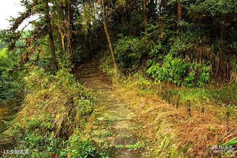 夕阳古道介绍:夕阳商川古道是进出川经商必经之道,往来的商人路经此地必是夕阳西下,他们都会在天心寺 住下待早晨继续赶路,所以天心古寺又称古驿站,曾经兴旺过、也必将再创辉煌。天心寺山门前,过去有一条东西走向的石板大道,蜿蜒在寺庙下面的溪河边,盘旋于寺庙东西两面的山岭上,它东连南川至滇黔,西北接“黄桷古道”进入重庆。这就是著名的夕阳古道,也称为渝黔古道。